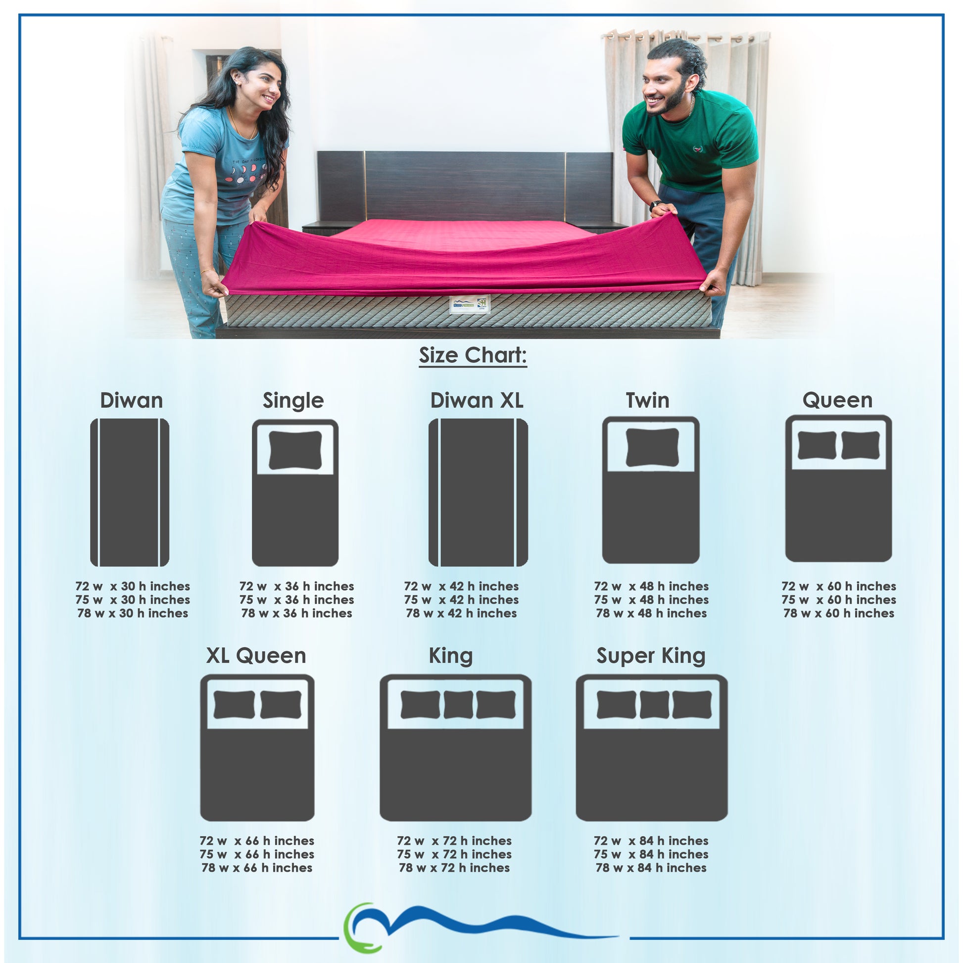 - Available in a variety of sizes to fit Diwan, Single, Diwan XL, Twin, Queen, XL Queen, King, and Super King mattresses